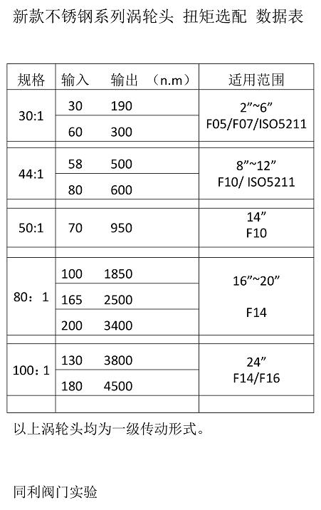 新款不銹鋼系列渦輪頭 扭矩選配 數據表